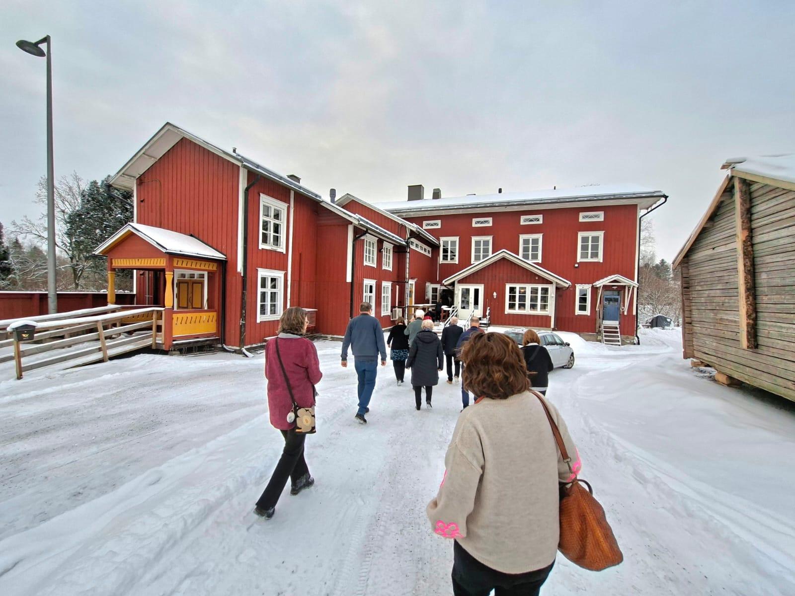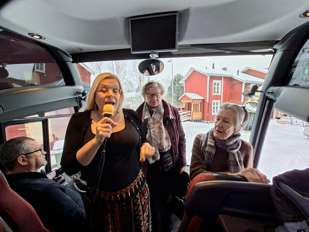 Tämän päivän Mysteerimatka alkoi Vaasan kaupungintalolta klo 8.30. Bussi oli täynnä- 57 osallistujaa. Jännittyneenä odotimme minne bussin nokka kääntyy. Mutkien kautta päädyimme Vähäkyröön johtavalle tielle turvallisen kuskin Kaj, kyydillä. Matkanjohtaja Virpi Nieminen kertoi historiasta ajalta Isoviha, Nälkävuodet, Venäjän vallan aika, todella mielenkiintoisella tavalla. Lisää tekstiä kuvien alla