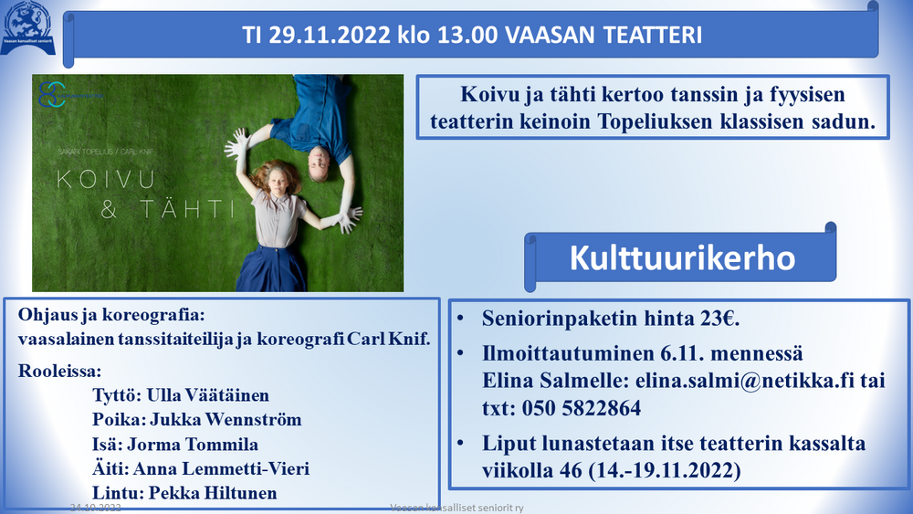 Ti 29.11. klo 13.00 Koivu ja tähti /Vaasan kaupunginteatteri