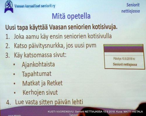 Jäsentapaaminen 10.9.2018, Seniorit nettiajassa, Kusti Vuorensivu