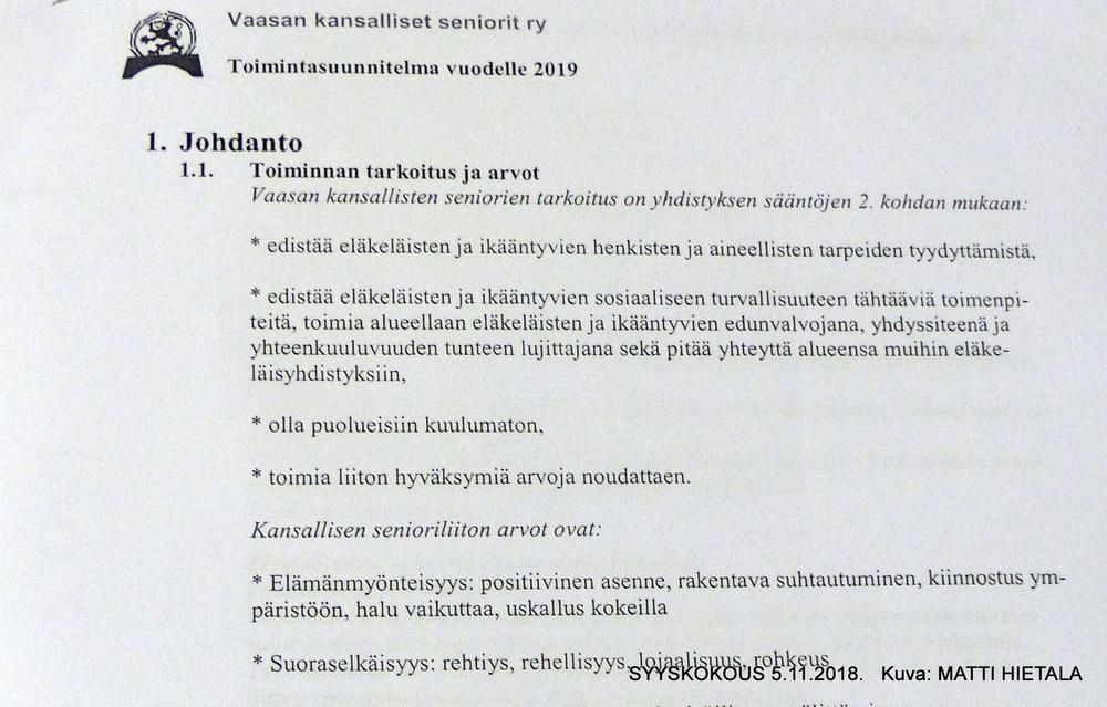 Jäsentapaaminen 5.11.2018, Syyskokous