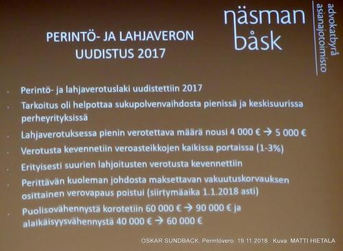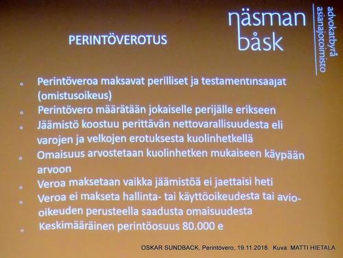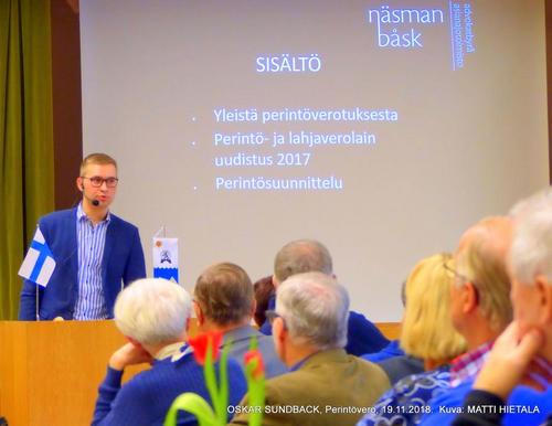 Jäsentapaaminen 10.11.2018, Perintövero, Oskar Sundback