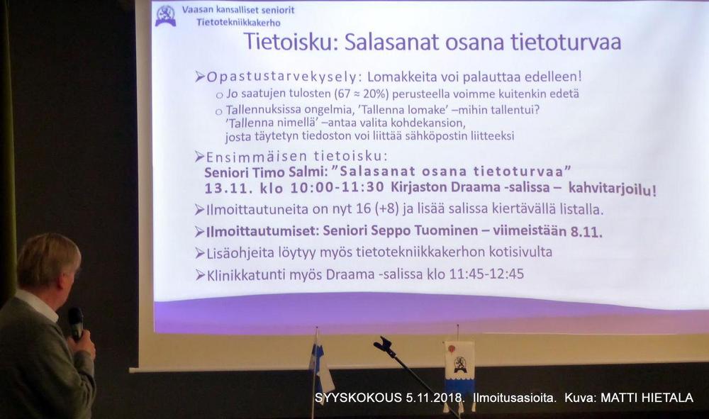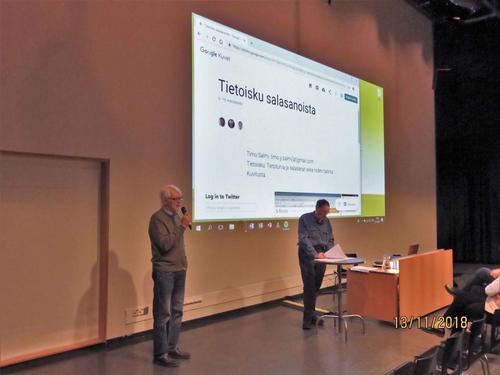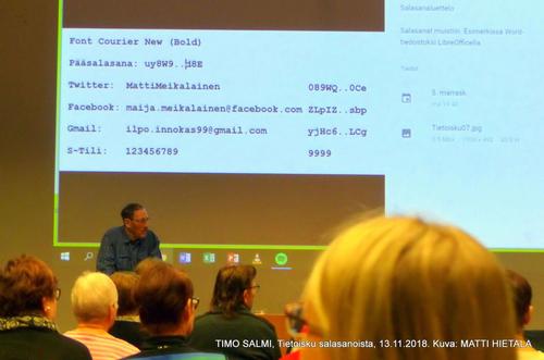 Tietotekniikkakerhon tietoisku salasanoista 13.11.2018, Draamasali, Timo Salmi