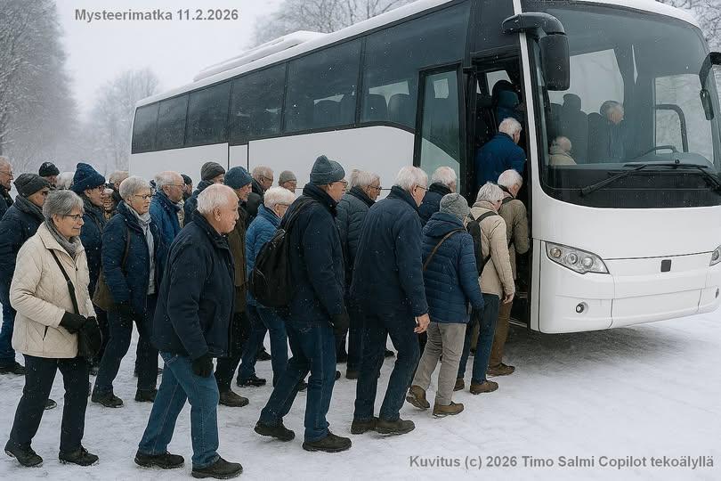 Matkaryhmä tarjoaa mahdollisuuden hypätä bussiin – ja jättää määränpään arvailujen varaan. Mikäli haluat kokea jotain uutta edullisella ja vaivattomalla tavalla, niin lähde mukaan vuoden ensimmäiselle mysteerimatkalle keskiviikkona helmikuun 11.2.2026 klo 08.30.